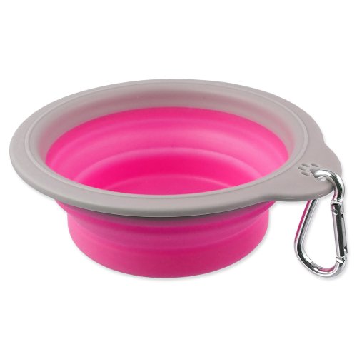 Cestovná miska skladacia. Vyrobená z odolného materiálu silikónu, ľahko zložiteľná do kompaktných rozmerov. Vhodná na cesty a dlhé prechádzky. Neprijíma pachy a ľahko sa udržuje. Odolná proti nárazom a mrazu. Obsahuje karabínu na uchytenie na batoh alebo oblečenie.
