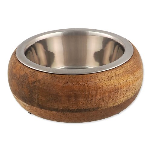 Štýlová miska , ktorá spája odolnú nerezovú oceľ s obalom z prírodného dreva . Zaoblený tvar dodáva moderný vzhľad a zároveň sa hodí do každého interiéru. Vďaka vyberateľnej nerezovej miske sa ľahko udržuje a je praktická pre každodenné kŕmenie aj vodu.