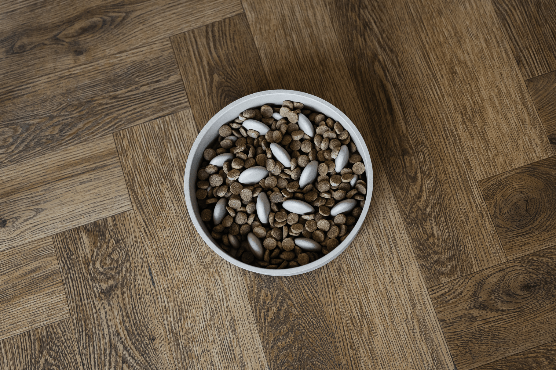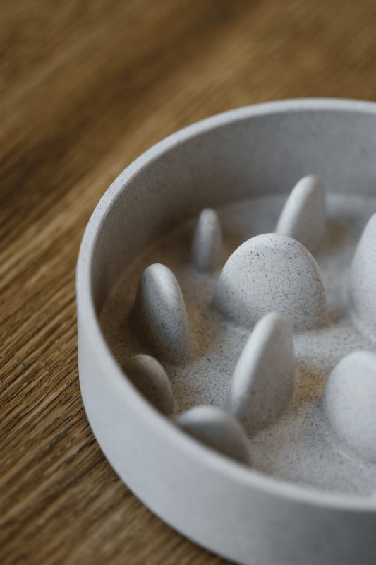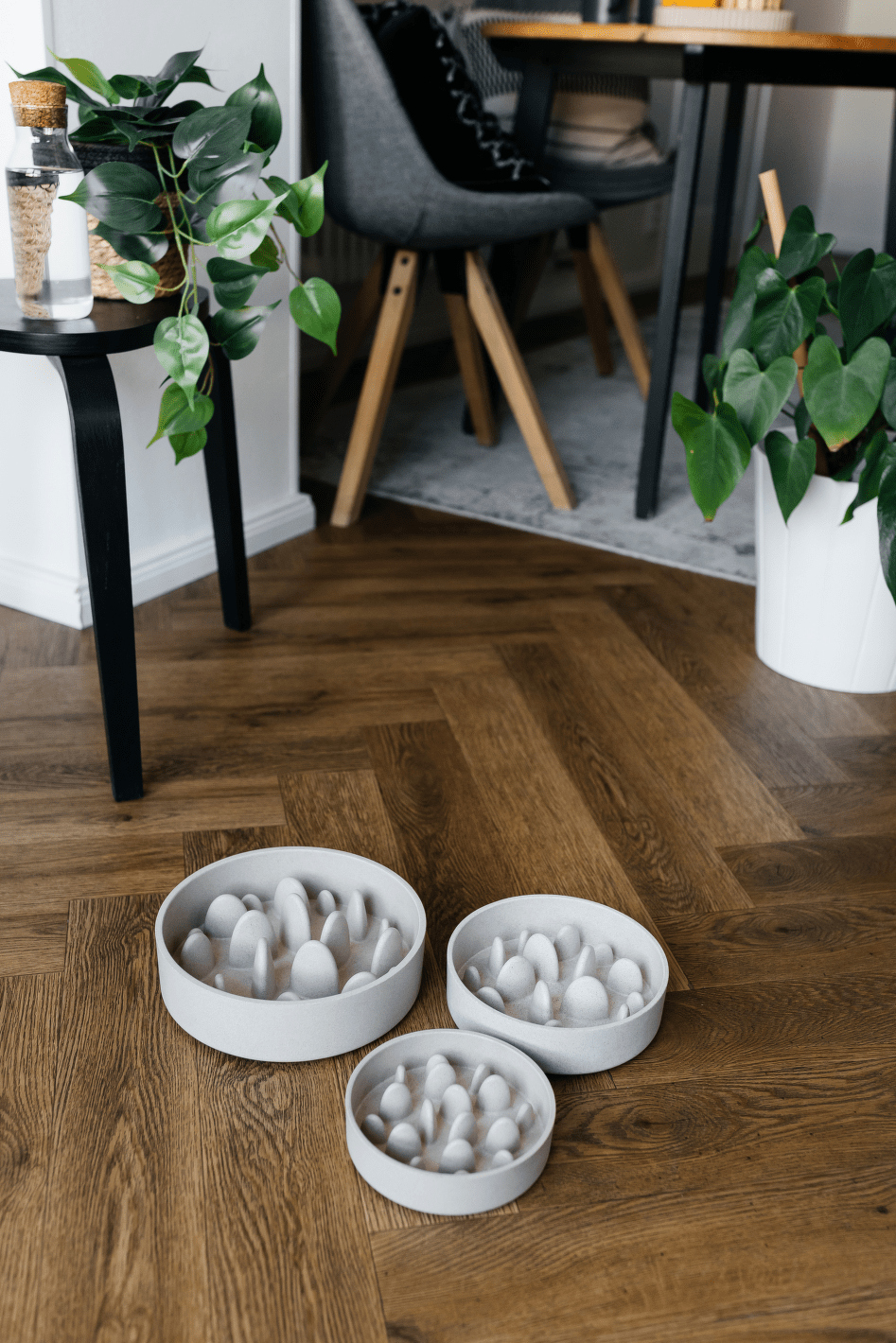 Štýlová miska v béžovom prevedení , ktorá vďaka špeciálnemu tvaru spomaľuje príjem krmiva a podporuje zdravé trávenie psa. Zabraňuje hltanie , predchádza zažívacím problémom a robí z kŕmenia pokojnejší a zdravší rituál. Vyrobená z odolného ekologického materiálu , ktorý je pevný a ľahko sa čistí .
