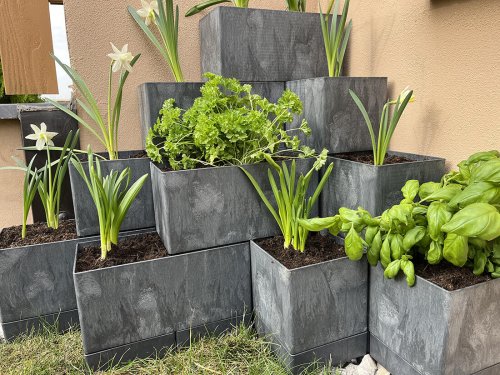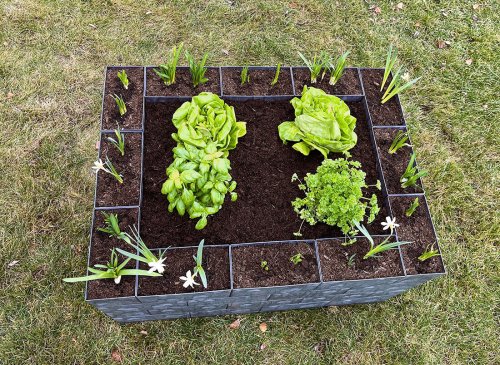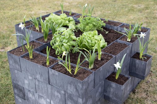 Flexi miska, príslušenstvo k stavebnici Flexi Element. Vhodná na použitie pri stavbni záhona na terase, balkóne a inom pevnom povrchu. Pri použití misiek je možné Flexi Element použiť aj ako kvetináč.