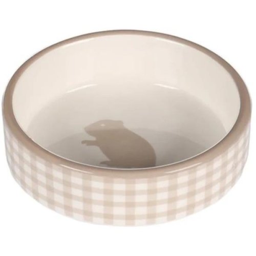 Keramická miska béžovej farby pre drobné cicavce s obrázkom škrečka. Objem: 100 ml