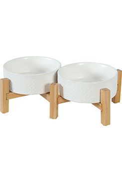 2 keramické misky pre psy aj mačky v elegantnom dizajne. Misky sú na spoločnej bambusovej podnoži, ktorá je opatrená protišmykovými podložkami.