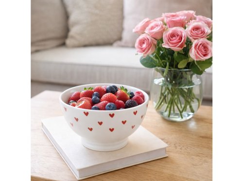 Krásna keramická miska s motívom srdiečok, ktorá prinesie do vášho stola nádych lásky a farieb. Skvelá na cereálie alebo ako dekorácia. Tovar je dodávaný v mixe. Doručovaný tovar je vyberaný náhodne a nie je možné vybrať konkrétne prevedenie.