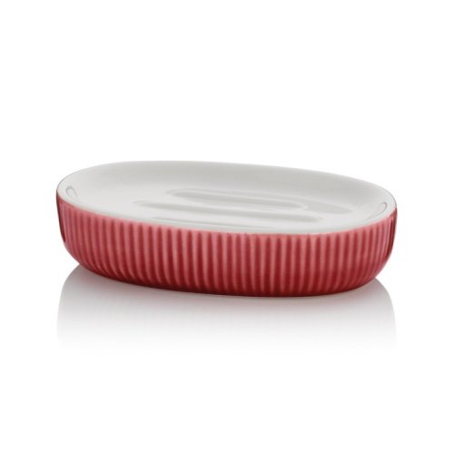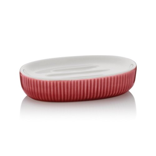 Farebný, veselý akcent do každej kúpeľne: mydelnička AVA v nápadnej malinovo červenej farbe s bielou keramickou policou.