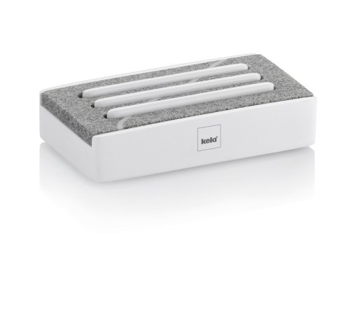 Elegantné kúpeľňové doplnky s moderným vzhľadom: biela miska na mydlo Cube je vyrobená z ľahko udržiavateľného plastu v bielej/matnej farbe. 3 vyvýšené drážky a kombinácia s plastovými prvkami vo vzhľade prírodného kameňa dodávajú mydlovke pútavý vzhľad a mydlo môže lepšie ležať. Mydelnička je 12 cm dlhá, 7 cm široká a 3 cm vysoká. Polyresin, matná biela 12x7cm, 3cm v
