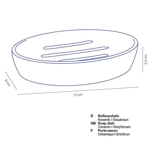 Špeciálna miska na mydlo zo série Dots. Vizuálne šedohnedý exemplár je niečím výnimočný. Takzvané "bodky" sú vystúpené a sú teda cítiť, keď držíte mydelničku v ruke. Rozmery: dĺžka 12 cm, výška 2,5 cm Keramický, lesklý, 12x9 cm, 2,5 cm v