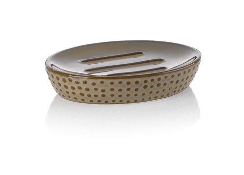 Špeciálna miska na mydlo zo série Dots. Vizuálne udržovaný v odtieni mocca, tento exemplár je niečím výnimočný. Takzvané "bodky" sú vystúpené a sú teda cítiť, keď držíte mydlovú misku v ruke. Rozmery: dĺžka 12 cm, výška 2,5 cm Keramický, lesklý, 12x9 cm, 2,5 cm v