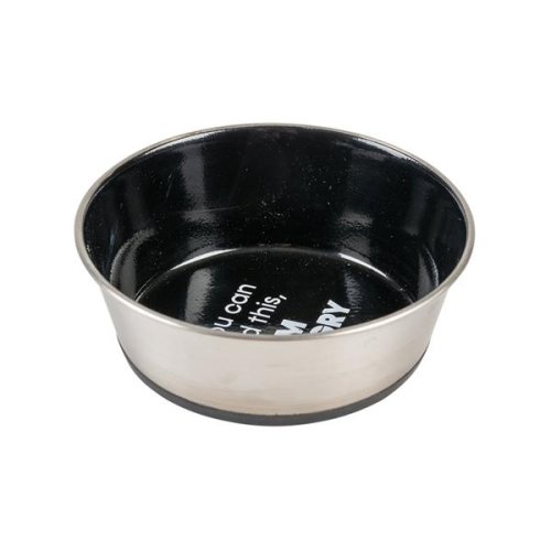 Miska Duvoplus Brushed Fix I'm Hungry na krmivo alebo vodu pre psov a mačky je vyrobená z brúsenej nerezovej ocele. Dno má potiahnuté gumou, aby na podlahe nekĺzala a nerobila hluk. Vhodná iba na ručné umývanie. Rozmery (cca): Ø 19,8 cm Objem: 920 ml Materiál: nerezová oceľ Farba: strieborná, čierna