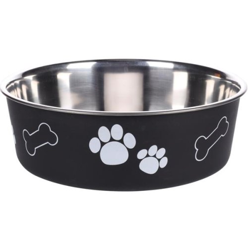 Odolná a hygienická nerezová miska je vhodná na suchú aj mokrú stravu alebo vodu. Snímateľný gumový krúžok na spodnej strane dna zabraňuje kĺzaniu a tlmí hluk. Misku bez gumového krúžku je možné umývať v umývačke. Farba: čierna s bielou labkou Objem: 2 200 ml