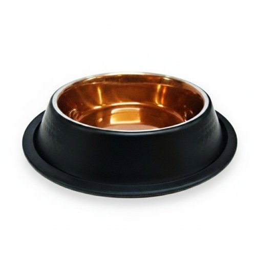 Nerezová miska vo veľmi netradičnom vzhľade. Kombinácia čiernej farby na vonkajšej strane a medené vo vnútri je netradičná a zaujímavá. Spodný okraj je opatrený gumou, aby miska nekĺzala po podlahe.