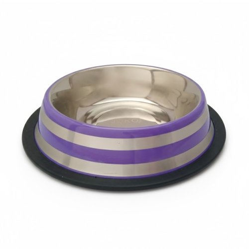 Nerezová miska stabilná s gumovým lemom - zabraňuje nežiaducemu pohybu po podlahe.