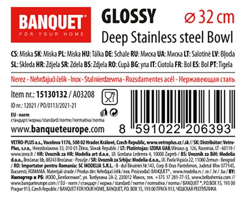 Nerezová hlboká miska GLOSSY. Miska má široké využitie v kuchyni, ľahko sa udržuje, je hygienická a odolná.