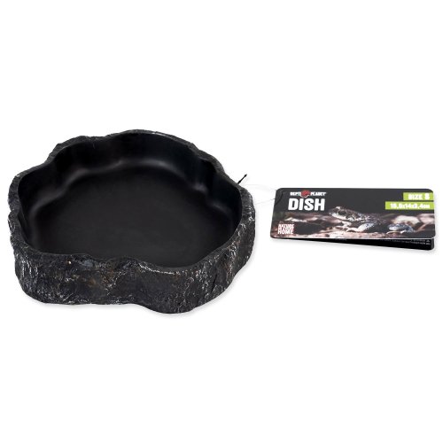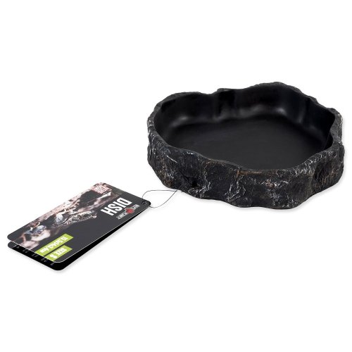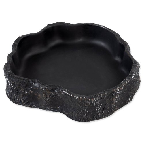 Miska na vodu či krmivo pre plazy, obojživelníky a ďalšie druhy zvierat, v čiernom dizajne.