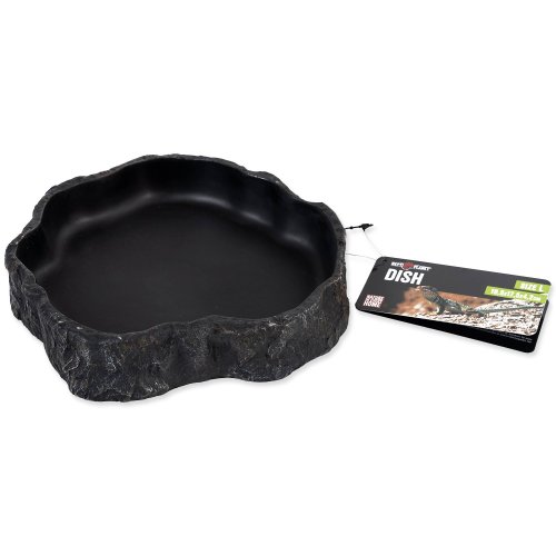 Miska na vodu či krmivo pre plazy, obojživelníky a ďalšie druhy zvierat, v čiernom dizajne .