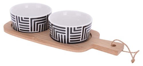 sada obsahuje: 2 x miska, tácka rozmery tácka: 12,5 x 10 cm rozmery miska: 8,5 x 4 cm farba: biela materiál: bambus, porcelán