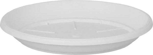 Miska pod kvetináč vo farbe bielej, okraj so zahnutým lemom.