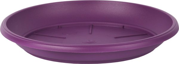 Miska pod kvetináč vo farbe fialovej, okraj so zahnutým lemom.