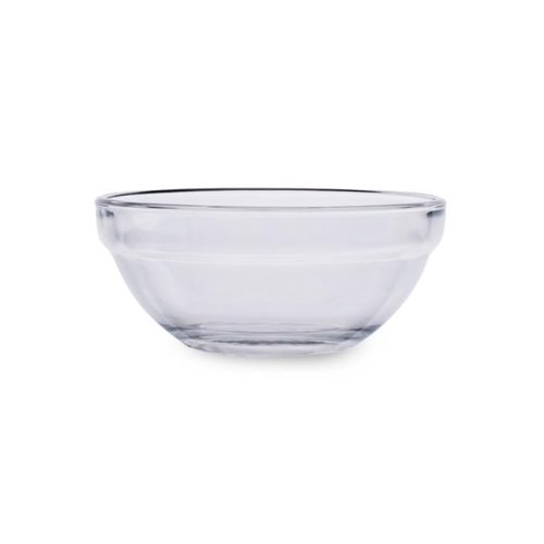 Hrubostenná stohovateľná sklenená miska. Horný priemer 10.5 cm. Miska je vhodná na dipy, dresingy a pod. Je vhodná do chladničky, mikrovlnnej rúry, umývačky riadu. EAN 8435123244116