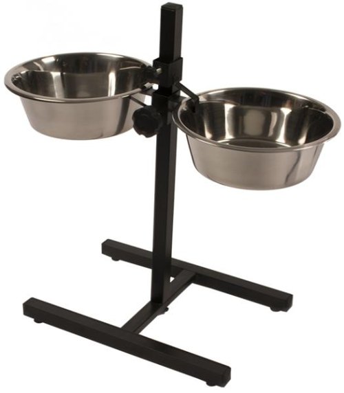Výškovo nastaviteľný stojan s nerezovými miskami s priemerom 21 centimetrov. Vďaka nastaviteľnosti stojana je kŕmenie a pitie pre psov príjemnejšie a pohodlnejšie. Misky je možné umiestniť presne tak, aby to vyhovovalo presne Vášmu psovi. Misky sú vhodné do umývačky.