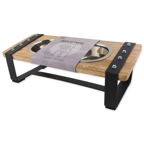 Misky Dog Fantasy nerez s dreveným stojanom, železná konštrukcia 2x400ml