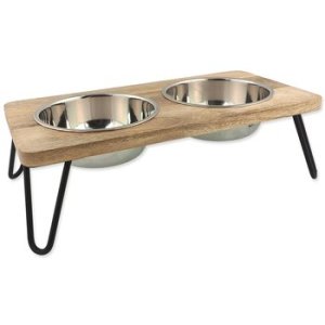 Misky Dog Fantasy nerez s dreveným stojanom, železné nohy 2x850ml