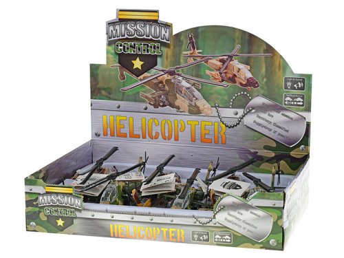 Zaobstarajte si celú armádu a vyrazte do bitky. Vojenská kovová helikoptéra z kolekcie Mission Control má veľkosť 20 cm. Helikoptéra je na spätný chod, svieti a vydáva zvuk. Dostupné sú 2 farby - hnedá, zelená. Vhodné pre deti od 3 rokov.