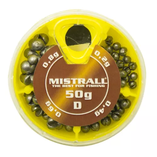 Praktická sada olovených bročkov Mistrall s celkovou hmotnosťou 50 gv prehľadnom otočnom dávkovači. Obsahuje bročky o veľkostiach 0,2 g, 0,4 g, 0,6 ga 0,8 g , ideálne pre presné vyváženie plavákov a doladenie jemných montáží pri plávaní aj feederi. Kompaktné balenie vhodné do každej rybárskej výbavy.