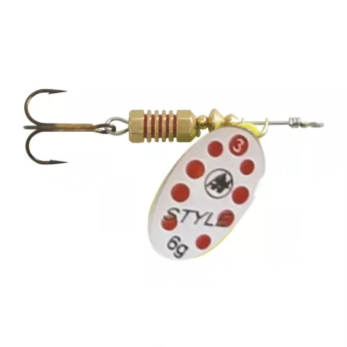 Rotačná trblietka pre najnáročnejších rybárov. Je určená skôr do pokojných riek, rybníkov a priehrad. Točí sa aj pri veľmi pomalom ťahaní. Zo širokej ponuky hmotností a farieb si určite vyberie každý rybár. Značkový VMC trojháčik je veľmi ostrý a pevný, nehrozí teda, že by sa ryba pri zábere nepichla.