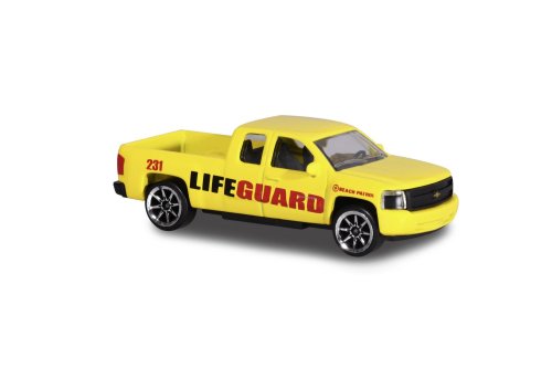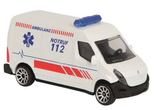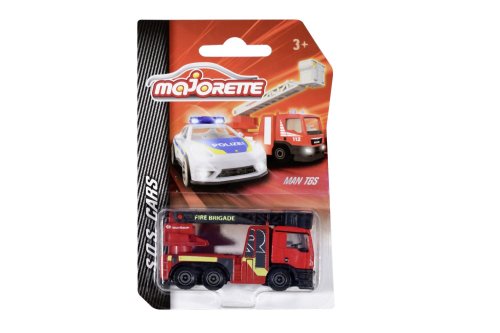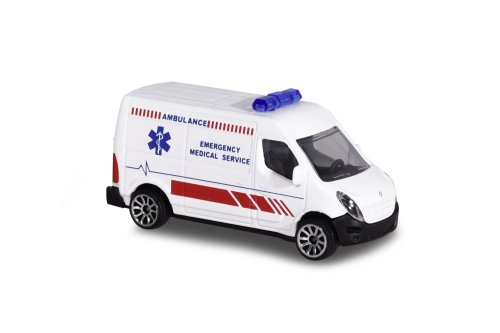 Kovové auto na voľnobeh, medzinárodná verzia. Pohyblivé a/alebo otváracie časti. Dĺžka 7,5 cm. 6 druhov: Chevrolet Silverado, hasičské auto MAN TGS alebo Mercedes-Benz Zetros, ambulancia Renault, policajné auto VW Amarok alebo Porsche Panamera.