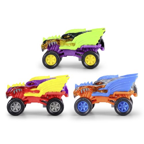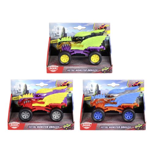 Auto Monster Dragon do terénu s kovovým telom na natiahnutie, gumové pneumatiky. Dĺžka 15 cm, 3 farebné variaty.