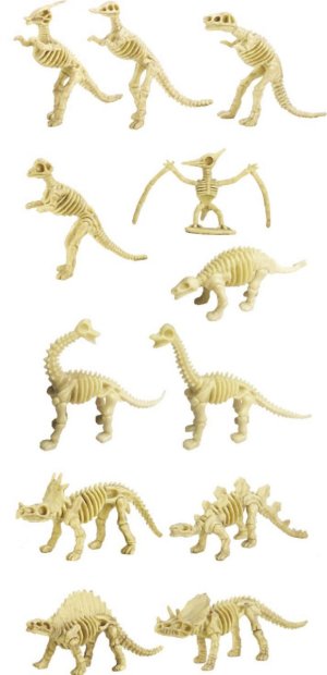 Súprava na vykopávanie kostry dinosaura, 12 rôznych druhov. Súčasťou je náradie a figúrka dinosaura. Veľkosť 6-7 cm. Balené v displeji po 12 ks.
