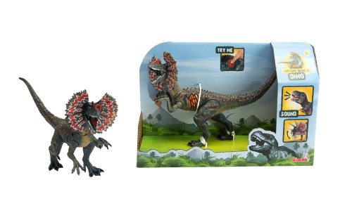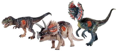 Dinosaurus vydávajúci zvuky, 3 druhy - T-Rex, Triceratops, Dilophosaurus. Figúrky sú pohyblivé, dĺžka 23 cm.