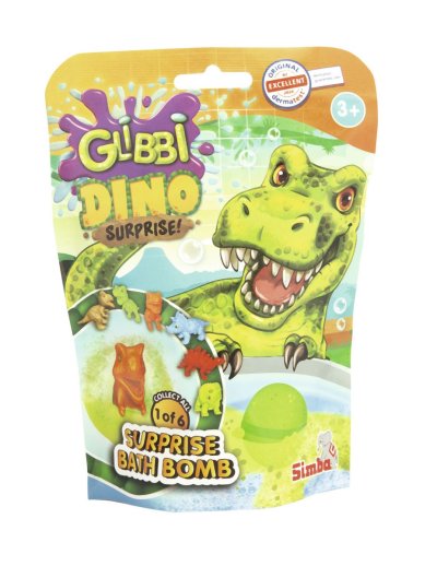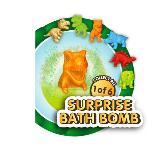 Šumivé vodné bomby v troch farbách (modrá, zelená, oranžová) s prekvapením - v šumivej guli sa skrýva jeden zo 6 dinosaurov. Balenie obsahuje 1 bombu do kúpeľa, váha gule 100 g. Bezpečné pre pokožku, neupcháva odpad, biologicky odbúrateľné.