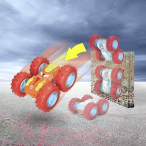Auto na zotrvačník s veľkými kolesami a pretáčacou funkciou. Dĺžka 10 cm, 4 druhy.