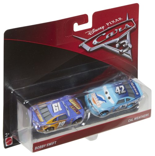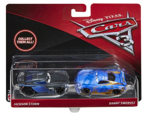 Toto skvelé dvojbalenie áut prináša najobľúbenejšie scény z filmu Autá 3 zo štúdií Disney a Pixar. Každé auto v mierke 1:55 má autentické filmové designy, prepracované detaily postáv i kolies, ktoré sa točia pre realistickú hru. Fanúšikovia si zamilujú množstvo dynamických postáv nakombinovaných pre zábavu pri kreatívnom rozprávaní! Fanúšikovia filmu Autá si užijú prehrávanie príbehov z filmu a vymýšľanie nových vlastných dobrodružstiev! Každé dvojbalenie sa predáva samostatne v závislosti od dostupnosti.
