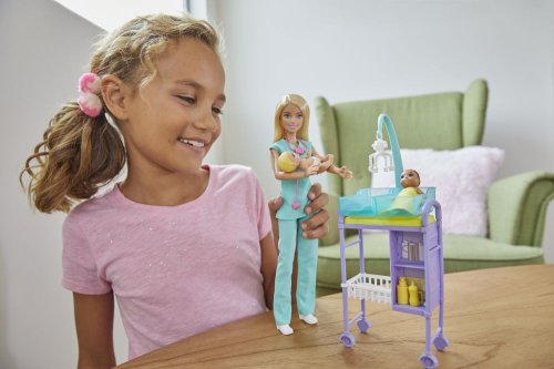 Objavte svet zábavy pri učení s hernými setmi Barbie® Povolanie! Každý herný set premení pracovný priestor na miesto na hranie, ktoré obsahuje bábiku, s prácou súvisiace prostredie a doplnky, vďaka ktorým môžu mladí pracanti preskúmať svoje budúce povolanie. Bábika Barbie® rada pomáha a stará sa o druhých. Deti si môžu vybrať z obľúbených povolaní, ktoré vystihujú toto zmýšľanie – od povolania učiteľky výtvarnej výchovy v triede až po detskú lekárku v ordinácii a ďalšie. Každý herný set obsahuje bábiku Barbie®, menšiu bábiku alebo dve - napríklad bábiku študenta, batoľaťa alebo dvojčatá detských pacientov - a zábavné prvky pre učenie a príležitosť k hre. Predávajú sa samostatne podľa aktuálnej ponuky. Bábiky nemôžu stáť samostatne. Farby a vzhľad výrobku sa môžu líšiť.
