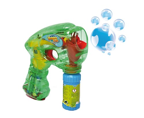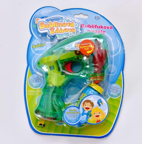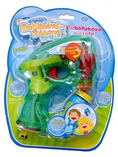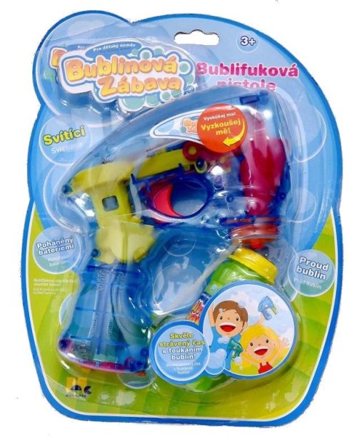 Bublifuková pištoľ, ktorá pri výrobe bublín svieti. Stlač spúšť a sleduj záplavu bublín.