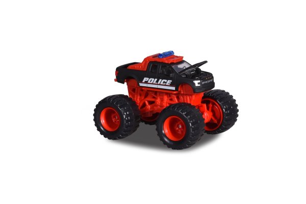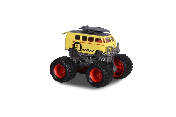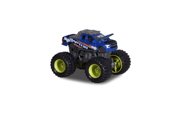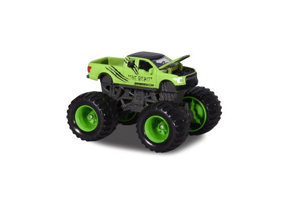 Kovové auto Monster Rockerz do terénu s veľkými kolesami na voľnobeh. 5 rôznych druhov. Dĺžka 9 cm.