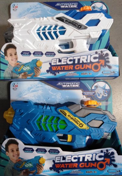 Vodná pištoľ na batérie. Naplň pištoľ vodou a zameraj.