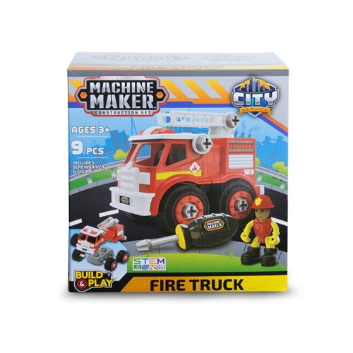 City Service prináša od značky Machine Maker všetky nové štýly a motívy. Postavte hasičské vozidlo, smetiarske vozidlo a odťahovku a potom jednotlivé diely kombinujte a vymýšľajte svoj vlastný bláznivý nový stroj. Každé vozidlo obsahuje skrutkovač, figúrku, samolepky a návod na použitie.