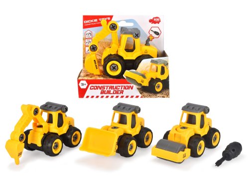 Žlté stavebné autíčko na voľnobeh, súčasťou skrutkovač. 4 druhy. Veľkosť 12,5 cm.