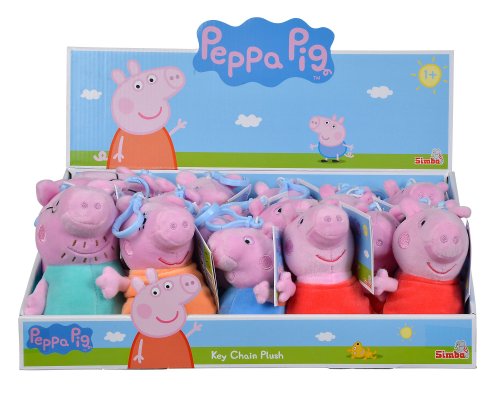 Prívesok na batoh - hrdinovia seriálu Prasiatko Peppa - displej obsahuje Peppu (9x) a prasiatko Toma, mamičku Prasiatko a otecka Prasiatko (každý 3x), Výška: 10-13cm. Displej 18 ks.