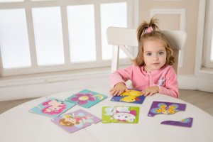 7 obrázkov, 18 ks Prvé puzzle pre batoľatá, 18 ks. Farebné obrázky a špeciálne kľukaté strihanie dodávajú hre viac zábavy. Táto hračka rozvíja logiku, motoriku, kreativitu a koordináciu ruky a oka. Odporúčané pre deti 1+.
