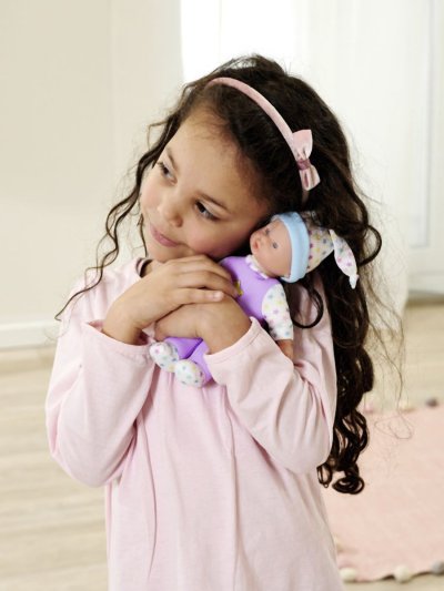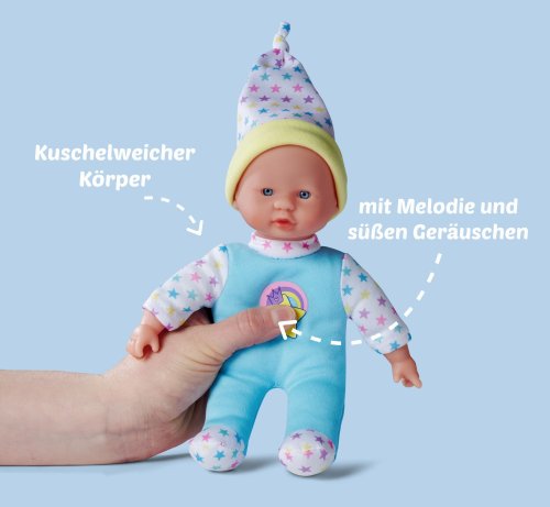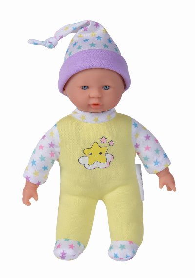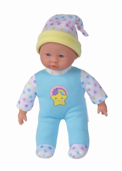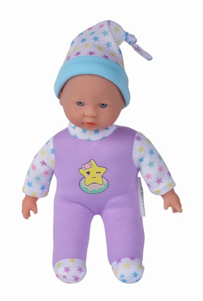 Bábika s mäkkým telíčkom a piatimi zvukmi, v roztomilom farebnom dizajne s hviezdičkami, 3 druhy. Veľkosť 20 cm.