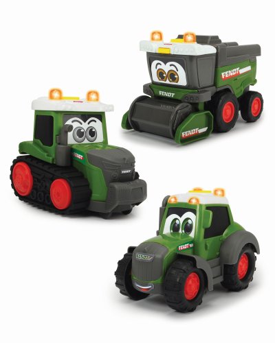 Zelené farmárske vozidlá pre najmenších, s pohyblivými časťami, so svetelnými a zvukovými efektmi, pre rozvoj motorických zručností. 3 druhy. Farmárske vozidlá sú samozrejme stálofarebné, odolné proti slinám, bez malých častí, ktoré je možné prehltnúť a so zaoblenými rohmi. Dĺžka 16 cm.