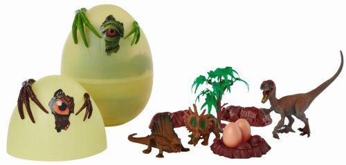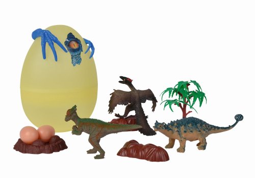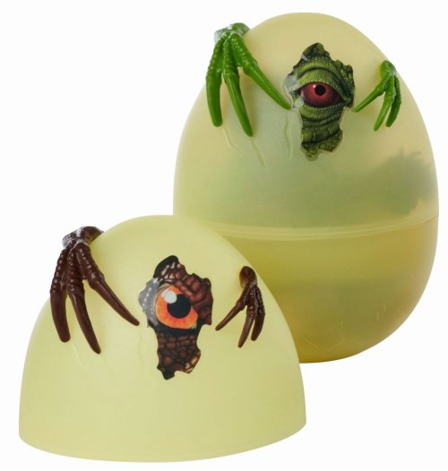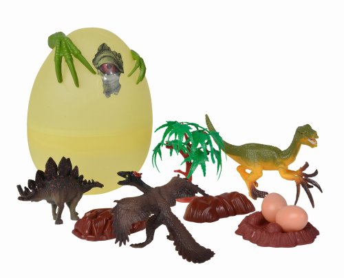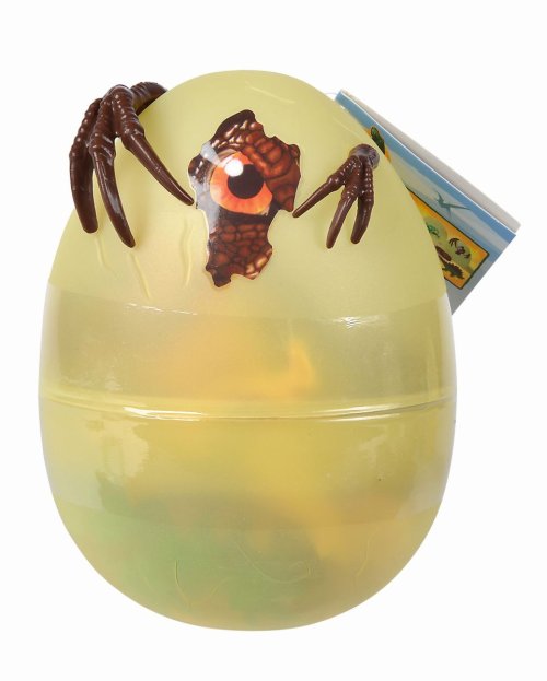 Vo veľkom dino vajíčku sa skrývajú celkom 3 druhy cool dinosaurov s doplnkami. Na vajci je vytlačené dinosaurie oko a sú na ňom dva dinosaurie pazúry. Ideálny darček pre fanúšikov dinosaurov. Tiež bude vyzerať dobre vo veľkonočnom košíku. Veľkosť vajcia 17 cm. Dinosaury obsiahnuté vo vajíčku majú medzi 9 a 12 cm.