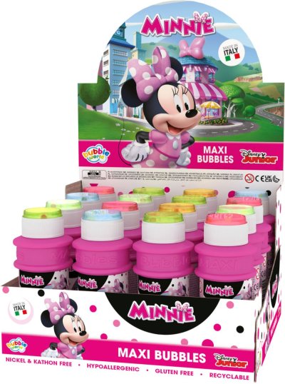 Bublifuk s motívom Minnie s obsahom 175 ml. Súčasťou farebného viečka je hra a fúkatko. Je možné zakúpiť aj ako celý display, kde je 16 ks.