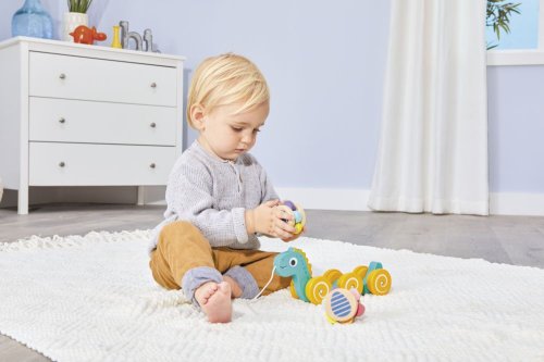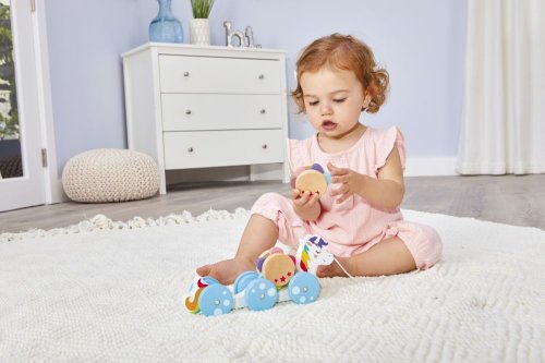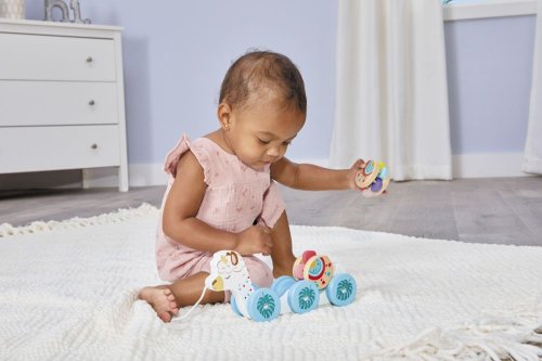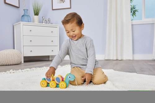 Little Tikes ponúka jedinečný rad drevených hračiek pre batoľatá, ktoré poskytujú jednoduchú klasickú hru v kreatívnom dizajne. Zatiahnite za povrázok a hračka pôjde na šiestich kolesách dopredu. Každé zvieratko má na chrbte dve kolesá, ktoré sa pohybujú, keď hračka ide. Táto ťahacia hračka má vlastný jedinečný tvar a jasný farebný dizajn.