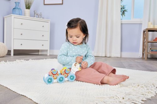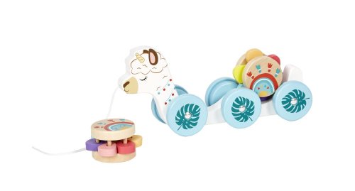 Obsah balenia: • 1 drevená ťahacia hračka so 6 funkčnými kolieskami a 2 kolesami na chrbte