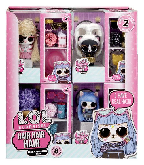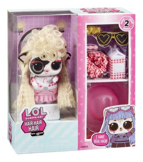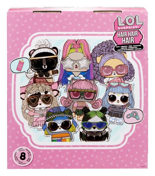 Predstavujeme nová LOL . Surprise! Hair Hair Hair Zvieratká! Rozbaľ svoje LOL . zvieratko s skutočnými vlasmi z nového priehľadného obalu. Každé balenie obsahuje niekoľko úžasných doplnkov. Získaj všetky vlasaté zvieratká a vytvor účes svojho maznáčika na množstvo rôznych spôsobov. S kombinovateľnými doplnkami vytvoríš báječný look celej párty. Zozbieraj ich všetky!
